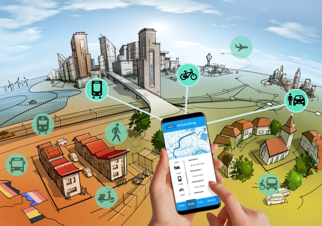 Mobility as a Service betekent: mobiliteit als dienst. Het OV ís al een dienst, maar mobiliteit als dienst reikt verder: individueel én collectief vervoer dat je met ICT aan elkaar knoopt: via je smartphone. Definitie van MaaS: “Mobility as a Service brengt elke vorm van vervoer samen in één app. Die combineert naadloos vervoeropties van verschillende providers, van planning tot betaling. MaaS regelt je reisbehoefte op de slimste manier. MaaS is een eenvoudig en milieuvriendelijk alternatief voor autobezit. Het neemt zorgen weg over route, parkeren en onderhoud en maakt bestemmingen makkelijker en efficiënter bereikbaar”. Simpel gezegd: MaaS is een app waarmee je verschillende vervoervormen voor een reis kunt opzoeken, plannen, boeken/reserveren én betalen. En zo nodig kunt laten bijsturen als er onderweg onverhoopt iets misgaat.