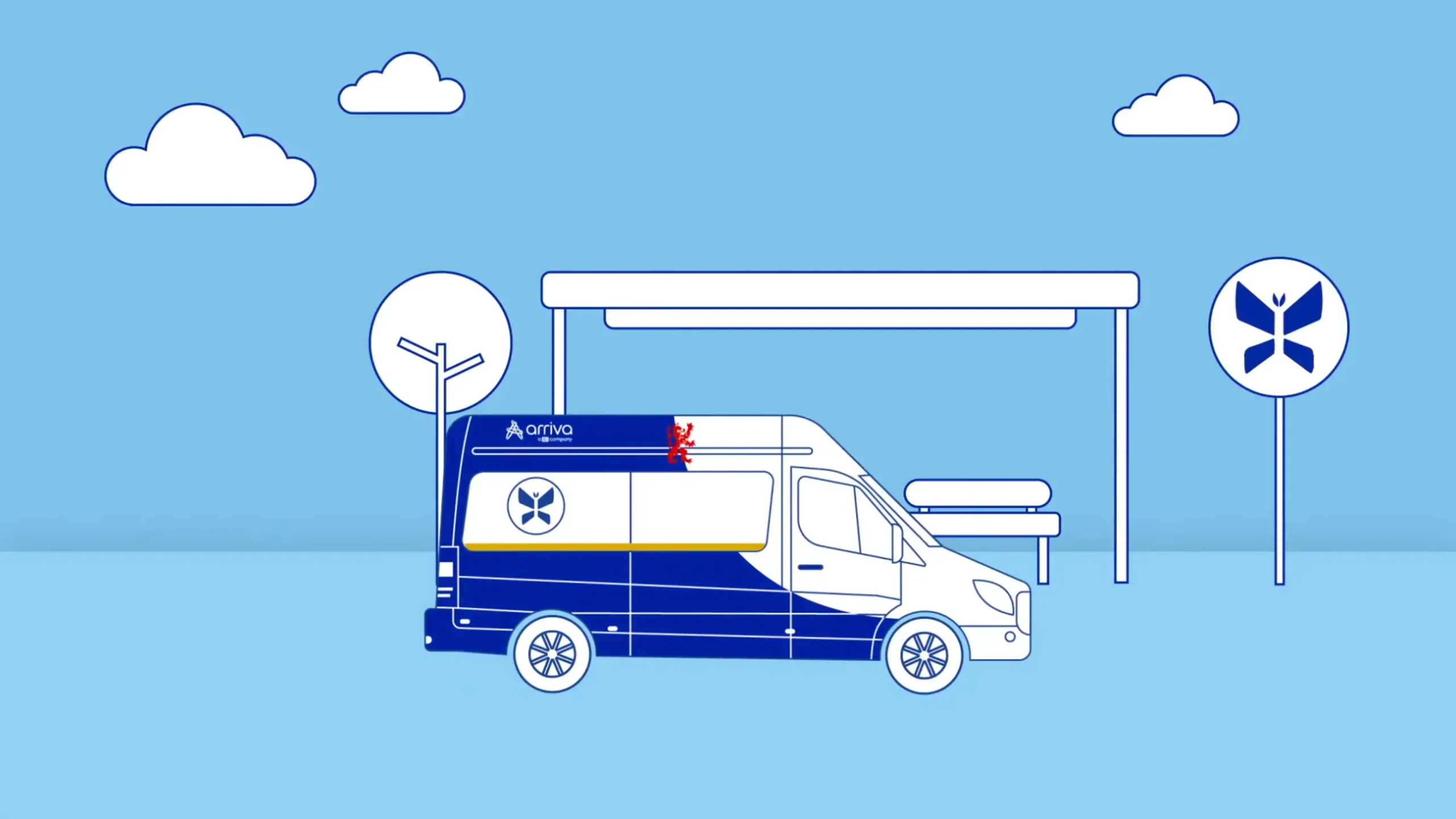 Klein busje met vrijwilliger dat rijdt volgens een dienstregeling